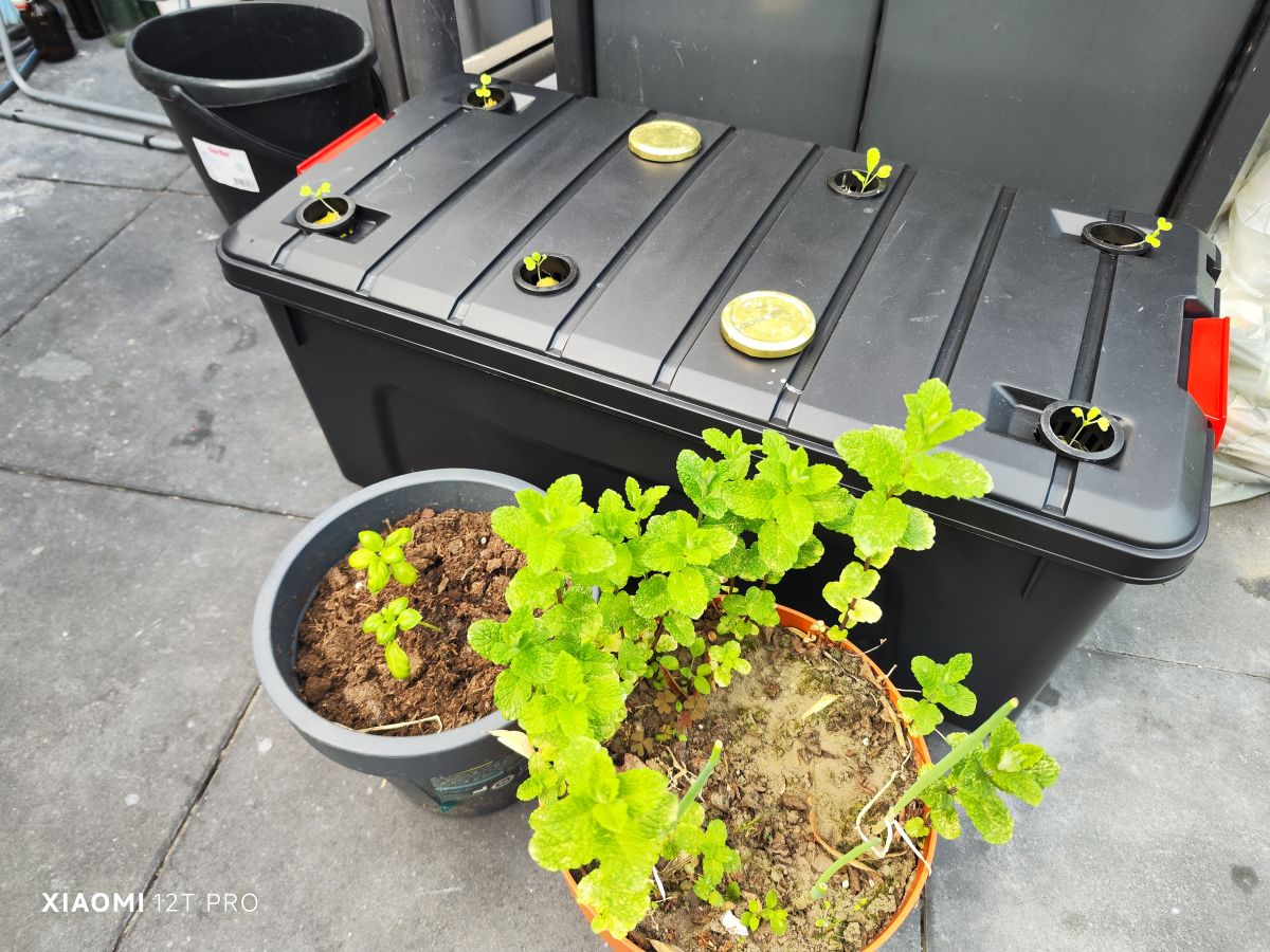 Nu inmiddels het een en ander gezaaid. Al veel begint uit te schieten. In mijn nft setup : koriander en sla bovenste zijn gereserveerd voor aardbeien deze zitten nog in de kweek bak en hiervan begint een zaad 1 langzaam uit te komen. Emmers 2x rawit chili. Groeibak ook 2 rawit chili. En nog 4 in een kweekbakje hiervan weet ik nog niet of deze in een hydroponic set up gaan of in een pot gezien de emmers ook behoorlijk wat ruimte in beslag nemen en de nft setup de wortel waarschijnlijk niet aankan. In 1 klein potje baby komkommer zodra deze goede wortels heeft gaat deze naar een grote emmer van 60l Ook zit er nog een in het zaaibakje. Deze komen na mei buiten te staan op het plattedak van mn aanbouw. Ook nog een klein bakje met wat sla. Verder zit er inn kweekbakje nog meer sla, aardbijen en 3 cherry tomaten plantjes waarvan er 1 uit begint te komen. In het yogurtbakje zit een basilicum stekje van een supermarkt basilicum met al wat wortels. Ook deze wil ik op de aanbouw gaan zetten en 1 onder de overkapping. Ook wil ik nog wat heavy duty ballen van 60l gaan halen om paksoi in te groeien. Inmiddels veel geleerd van het vorige seizoen en ben benieuwd wat ik dit seizoen weer bij leer.