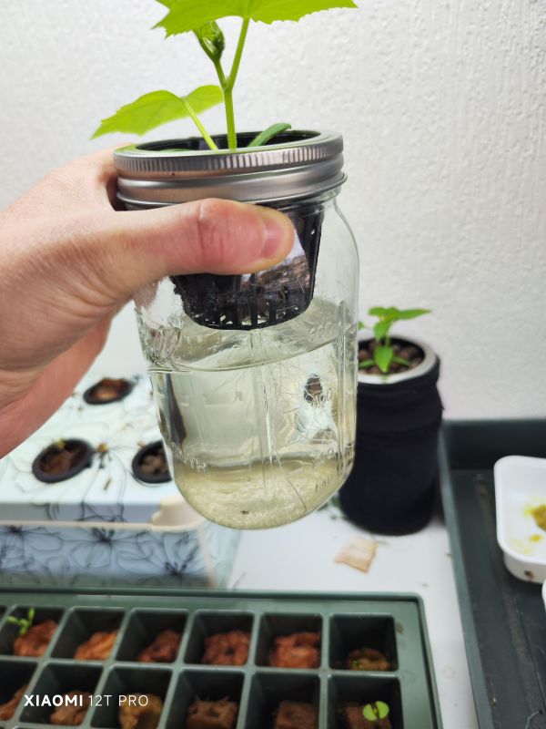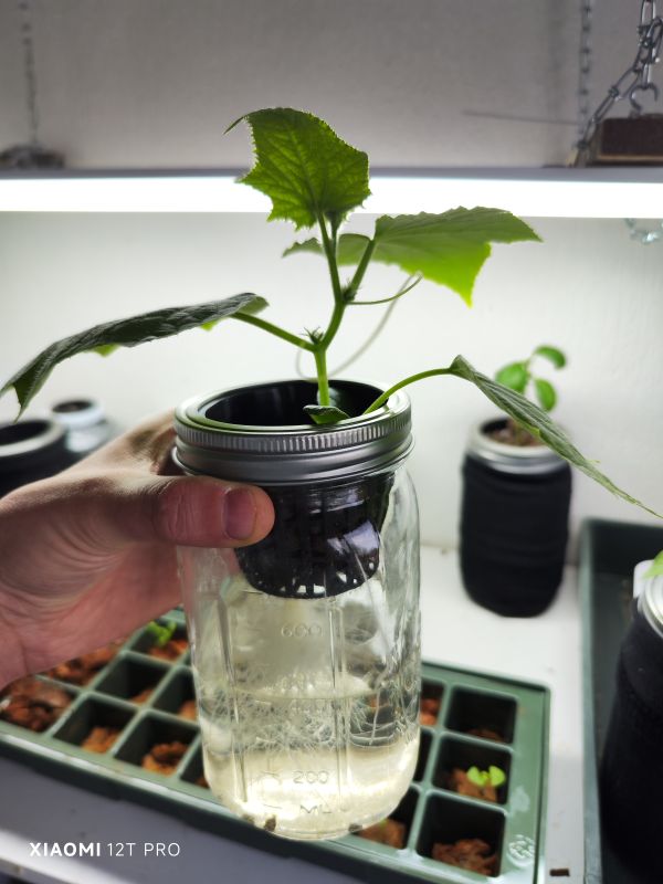 TJs indoor hydroponics reageerde op TJs indoor hydroponics's topic in Square foot gardening en tuinieren in pottenMini update: ik had een kleine fout gemaakt met de EC ik had perongelijk PPM gemeten ipv EC waardoor de EC veel te hoog was. Dit inmiddels gecorrigeerd en dit bracht direct resultaat. De komkommer doet het heel goed in de mason jars beter dan de komkommer plant die vroeg tijdig in de emmer zat. Ook kleurt het water van de emmer sneller groen waarschijnlijk trek ik er een zwarte en daarna witte vuilniszak over de emmer om alg vorming tegen te gaan. Zodra het weer het toelaat gaan ze langzaam aan in een emmer naar buiten.
