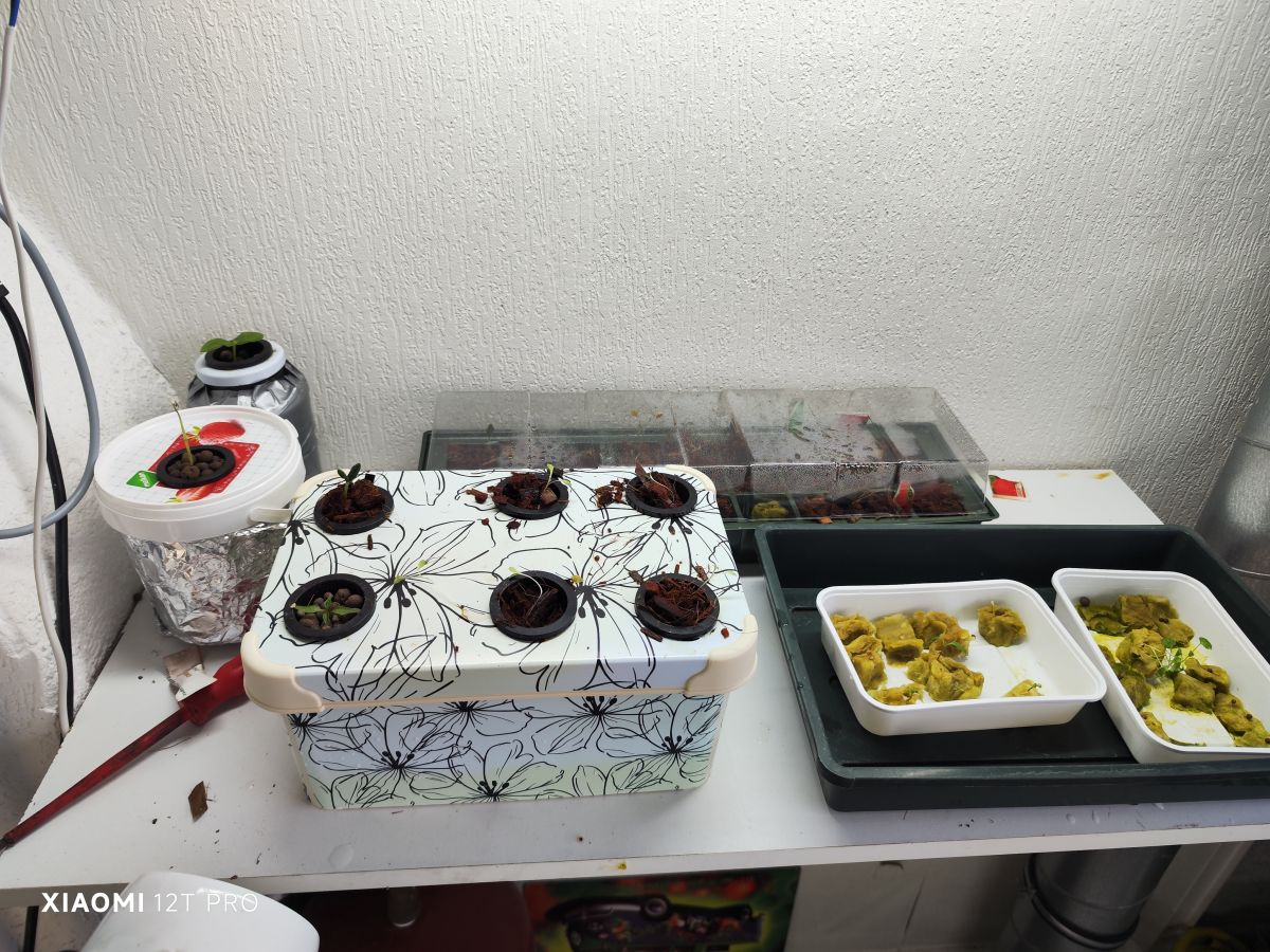 Nu inmiddels het een en ander gezaaid. Al veel begint uit te schieten. In mijn nft setup : koriander en sla bovenste zijn gereserveerd voor aardbeien deze zitten nog in de kweek bak en hiervan begint een zaad 1 langzaam uit te komen. Emmers 2x rawit chili. Groeibak ook 2 rawit chili. En nog 4 in een kweekbakje hiervan weet ik nog niet of deze in een hydroponic set up gaan of in een pot gezien de emmers ook behoorlijk wat ruimte in beslag nemen en de nft setup de wortel waarschijnlijk niet aankan. In 1 klein potje baby komkommer zodra deze goede wortels heeft gaat deze naar een grote emmer van 60l Ook zit er nog een in het zaaibakje. Deze komen na mei buiten te staan op het plattedak van mn aanbouw. Ook nog een klein bakje met wat sla. Verder zit er inn kweekbakje nog meer sla, aardbijen en 3 cherry tomaten plantjes waarvan er 1 uit begint te komen. In het yogurtbakje zit een basilicum stekje van een supermarkt basilicum met al wat wortels. Ook deze wil ik op de aanbouw gaan zetten en 1 onder de overkapping. Ook wil ik nog wat heavy duty ballen van 60l gaan halen om paksoi in te groeien. Inmiddels veel geleerd van het vorige seizoen en ben benieuwd wat ik dit seizoen weer bij leer.