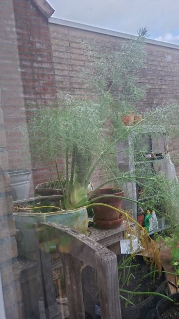Nog 1 mooie venkel in mijn mini. Eigenlijk was hij de kleinste an de 3 De andere 2 begonnen door te schieten dus die geoogst. @Petrasmoestuin ik las net dat jij zei ik zal die venkel in het voorjaar nog eens proberen. Venkel voor het blad zaai ik idd vroeger. Maar voor de knol zaai ik later. Volgens mij pas na de langste dag van het jaar.