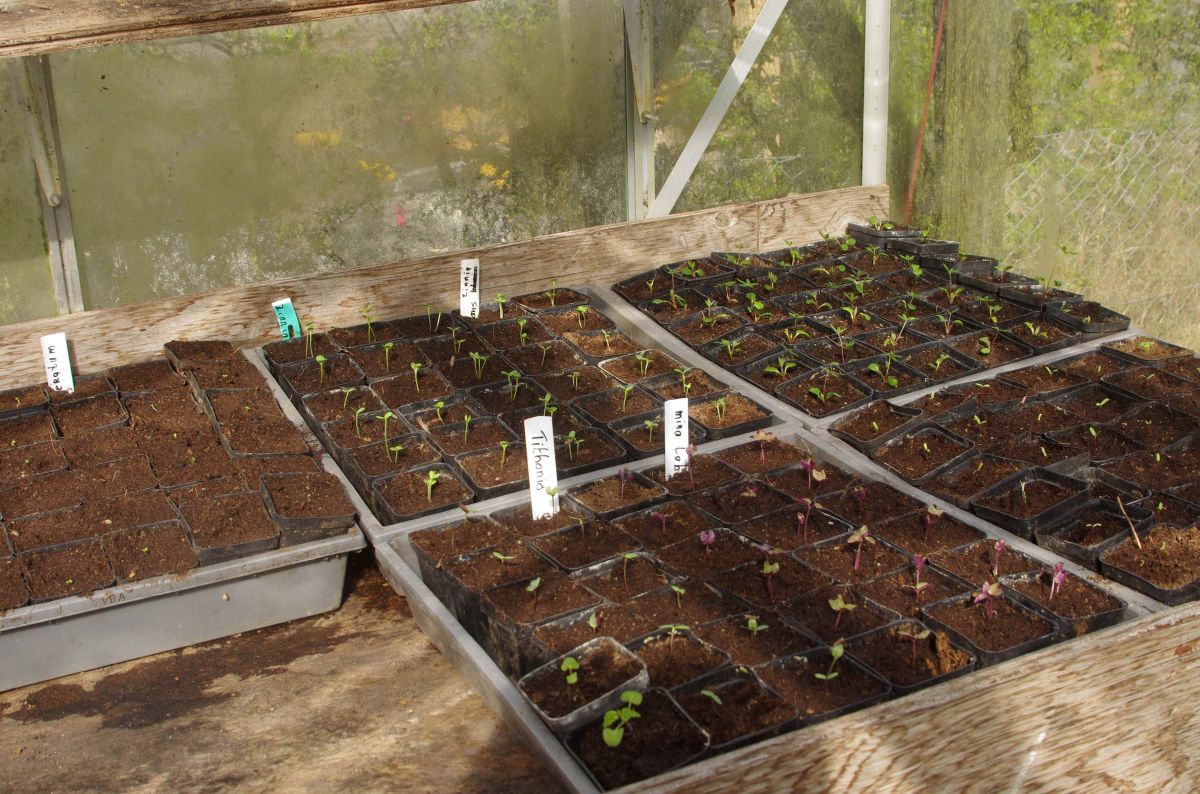 Ik heb gisteren van alles gezaaid. Basella/navajo-spinazie(cleome)/ Nemophila/Tagetes/tolpis/diverse Zinnia/Tithonia/Lobelia/Aster/Anthirrinum/Hybiscus trionum/Ageratum/Petunia/Lupine/wilde Salvia splendens.
