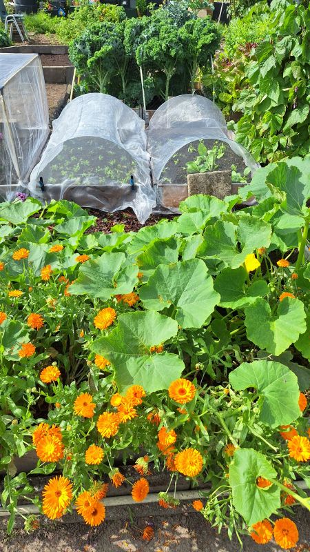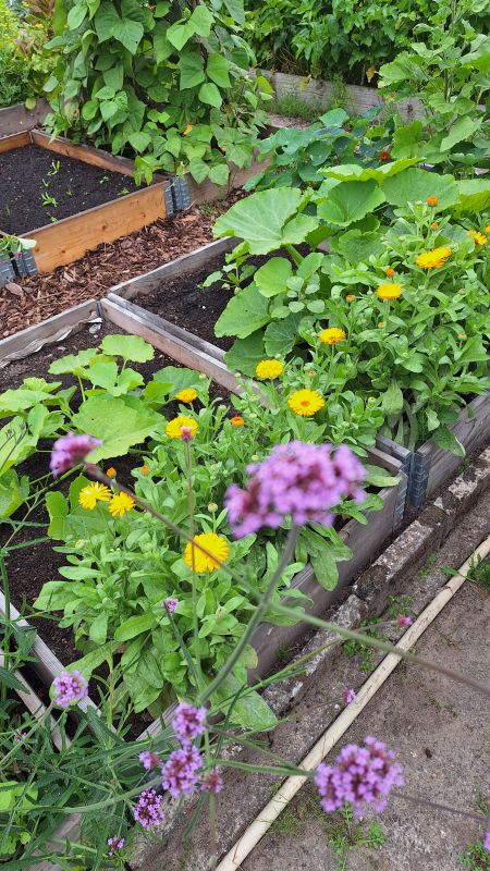 2. Afgelopen jaar was mijn eerste seizoen met een moestuin bij een vereniging. Natuurlijk heb ik ook bloemen gezaaid en geplant. Komend jaar maak ik zelf een aparte hoek met vaste planten en een vijvertje om insecten te lokken. En voor de sier natuurlijk! Goudsbloem en Verbena: Hier rechts in de drie bakken komt de vaste plantenhoek: