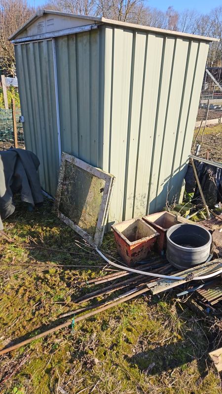 En het is zover. Ik heb een perceel toegewezen gekregen! Afval word afgevoerd De compostmolen geef ik aan mijn tante. Voor het compost heb ik al plannen Schuur zit op slot. Moet effe een betonschaar fixen. De moestuin zit tegen 5 bijenkasten aan (Jippiejajee 😎) en heeft er een waterpomp in staan. Ik ben al materiaal aan het opschonen geweest en in een hoek gegooid. Meeste gereedschap heb ik al. Zaden heb ik ook al gehaald. Stokken heb ik ook al gehaaldm Kratten etc etc, Meer foto's volgen later. Ooh, En weet iemand waar de rubriek voor algemene vragen staat?