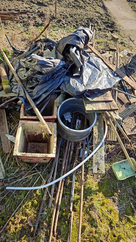 Afgelopen week na de tuin toegewezen te hebben gekregen direct aan de slag gegaan. Stokken, bakken en extra gereedschap gehaald. Palen gehaald en gezet. Komende week komen er 30 paletranden mijn kant op. Onlangs de regenton vervangen want de vorige was oud en beschadigd, De compostmolen is kapot en ga ik afvoeren. De planning is om een compostbak te maken van composiet vlonders. Het stuk welke nu is omgewoeld is voor de aardappelen. Geen idee of ik die vol krijg. In de bakken heb ik het volgende gezaaid: Peterselie Maggikruid Marokkaanse munt Basilicum Bieslook. Het pleintje is weer proper gemaakt. De compostbakken zijn verwijderd. Alle middelste paden zijn verwijderd en zullen opnieuw worden gelegd. Ik heb een emmer vol met stukjes plastic uit de grond verwijderd tijdens het spitten. Ook veel wasknijpers. Volgende week word er mest geleverd. Dit gebeurd daar collectief. Ook is er heel veel ijzer uit de bodem gehaald, en veel stenen. Verder is het grofvuil ook afgevoerd.