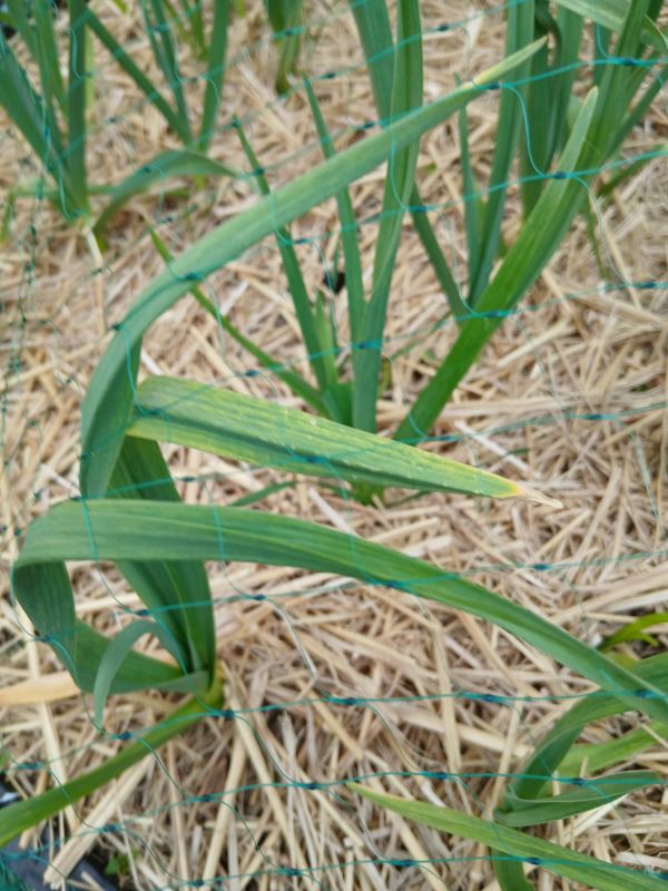 Knoflookbladeren worden geel