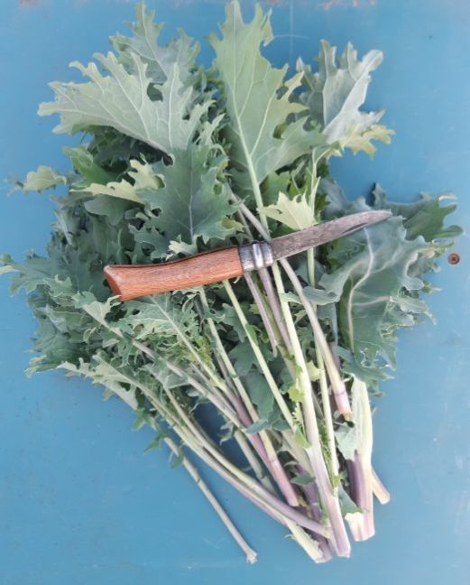 In de kas of platte bak kan je het hele jaar door sla etc. telen. Wordt het te warm dan leg ik ramen een stukje open of bij de kas de deur. Als je het een beetje mikt kan je in okt en febr de kas vol zetten en dat oogsten voor er bijv. de paprika´s en tomaten in gaan. Een foto van begin febr. 2023: Koolplanten vroege tuinbonen voorjaarsgroenten en overwinterende potten en planten die voorgetrokken worden onder glas. Foto uit mijn Blog: