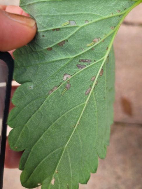 Kapotte bladeren aardbeiplant soort rupsen?