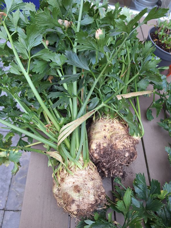 Bedankt. Mijn man wilde de border weer vrij hebben. Dus ik moest ze er nu wel uithalen. Ik heb her met 2 maanden weten te verlengen. Ik vind ze heel mooi wat grote betreft. Dus dit weekend was het tijd en mijn man weer blij. @Vrouwholle bedankt. Dit was voor mij ook de eerste keer met gied resultaat. Vorig jaar had mijn moeder ze (te laat) gezaaid. Ik had toen een vuist dikke knolselderij. Ik had er geen zaad van dit jaar, maar geruild op de MTFD in het voorjaar. Ik heb nu inmiddels wel eigen zaad gekocht en komend seizoen kan ik dus zelf zaaien. Ik zaai er genoeg, ook voor mijn tante en moeder. Ze hebben beiden al een bestelling geplaatst bij mij 😃