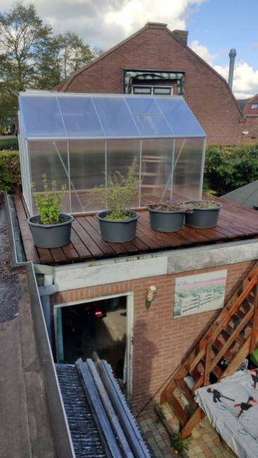 Ik ben dus inderdaad van plan om kurkuma, gember en dat soort zaken te zetten (zou knoflook het ook nog willen doen?). Mijn kasje staat overigens op mijn schuurdak. Ik heb een vlonder op mijn schuurdak gemaakt en daarop mijn kas. Ik vind jullie tips omtrent wat het goed kan gaan doen in een kas heerlijk. De meeste van die tips gaan over genomen worden. Pit