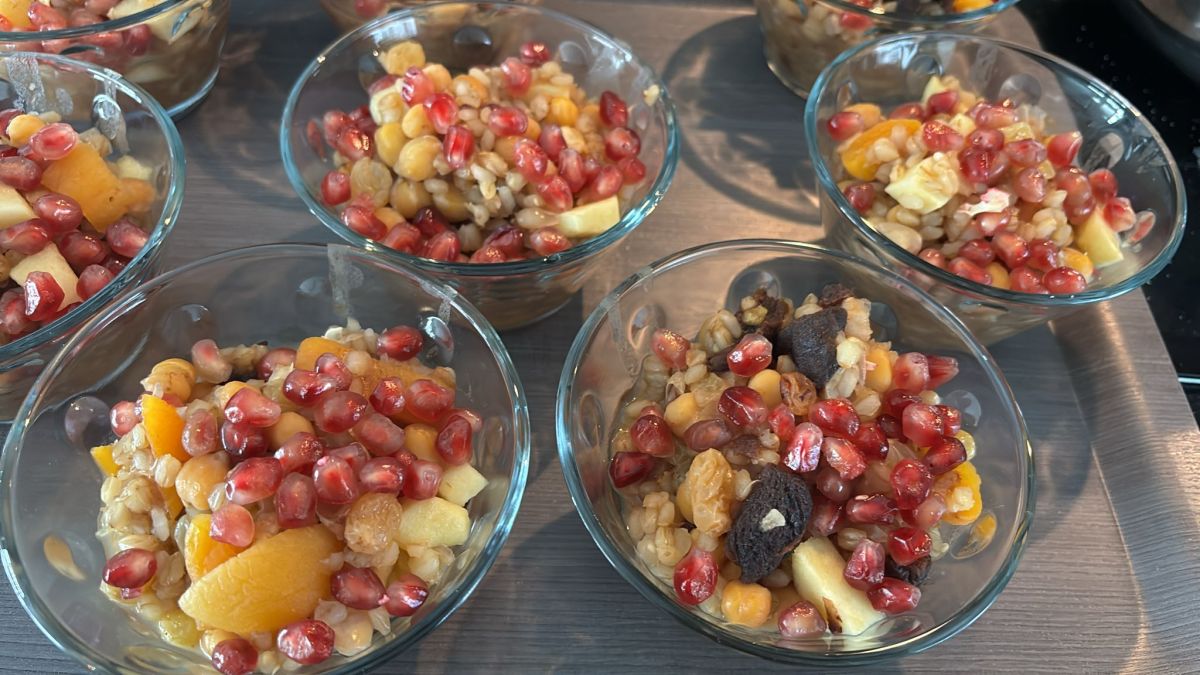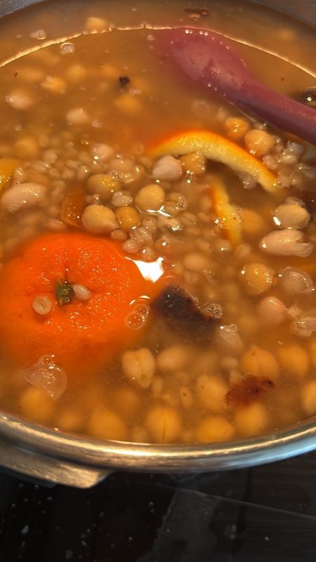 Ik heb aşure gemaakt. Had ik al maaaaaanden zin in, maar zo veel werk. Vastenhonger heeft me doen besluiten het te maken. Zo was het toen het nog niet af was. Nu is het zo. Nog afkoelen en koud worden. Vanavond feestdessert. Wat is Aşure? Ingrediënten: Typische bestanddelen zijn tarwe (of bulgur/gerst), kikkererwten, witte bonen, gedroogde vijgen, abrikozen, rozijnen, krenten, hazelnoten, walnoten en pijnboompitten. Het wordt gezoet met suiker en vaak op smaak gebracht met citroen- of sinaasappelschil. De Legende (Noachs Pudding): Volgens de traditie maakte de profeet Noach (Nuh) dit gerecht nadat de Ark op de berg Ararat was aangespoeld. Met de laatste restjes voedsel die nog aanwezig waren op de ark, kookte hij een grote pot met "pudding" om de overleving te vieren. Symboliek: Omdat er veel verschillende ingrediënten in zitten, symboliseert aşure eenheid in verscheidenheid. Wanneer eet je het? De maand Muharram: Aşure wordt traditioneel bereid en gegeten tijdens de eerste maand van de islamitische kalender, genaamd Muharram. De Dag van Aşure (Asjoera): Het hoogtepunt is de 10e dag van deze maand (de Dag van Asjoera). Traditie van delen: Aşure wordt meestal in grote hoeveelheden gemaakt en uitgedeeld aan buren, vrienden, familie en de armen, ongeacht hun religieuze achtergrond. Alevitische traditie: Bij de Alevitische gemeenschap wordt aşure ook gekookt na een 12-daagse vastenperiode (Mâtem Orucu) ter herdenking van de martelaarschap van Imam Hoessein. Andere gelegenheden: Het wordt ook bereid bij geboortes, overlijdens (na 40 dagen rouw) of als traktatie.- Sambal Badjak Jet