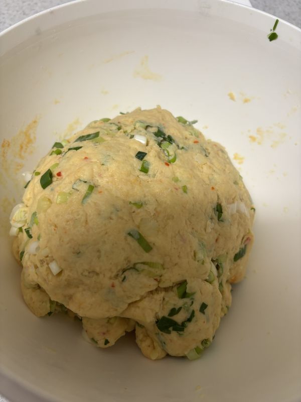 Waterglas. Je deeg moet niet meer plakkerig zijn, dus dat voel je vanzelf. @Petrasmoestuin Ik heb vandaag ook een versie met lente ui gemaakt voor mijn ouders. Nog niet geproefd, maar volgens mij ook heerlijk. Mijn kind reageerde in elk geval met ‘mmmmmnommnomnommmmm’. Je kan hier de consistentie zien. Gewoon niet plakkerig deeg. Gisteren had ik 3,5 waterglas bloem. Was min aardappel toch natter. Vandaag maar 2 glazen. Afiyet olsun- Zelf brood bakken moeilijk ?