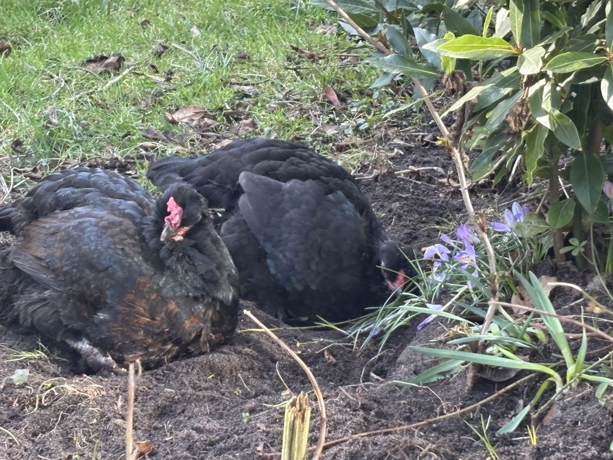 Kippen los gelaten. Die hebben gelijk flink gegraven. Alle molshopen en andere gaten aangestampt. Eerste was buiten opgehangen. Een jonge merel gevonden. Leek beetje gek op de pootjes te staan. Klopte. Denk harde smak gemaakt uit het nest. Die is helaas dood gegaan… op een mooi plekje begraven. Had 2 brullende kinderen. Waarom gaat alleeeesssss bij ons doohoooooddd… Zucht. Zware lessen allemaal.- Wat heb je net gegeten, of ga je nog eten (uit eigen tuin) 2026