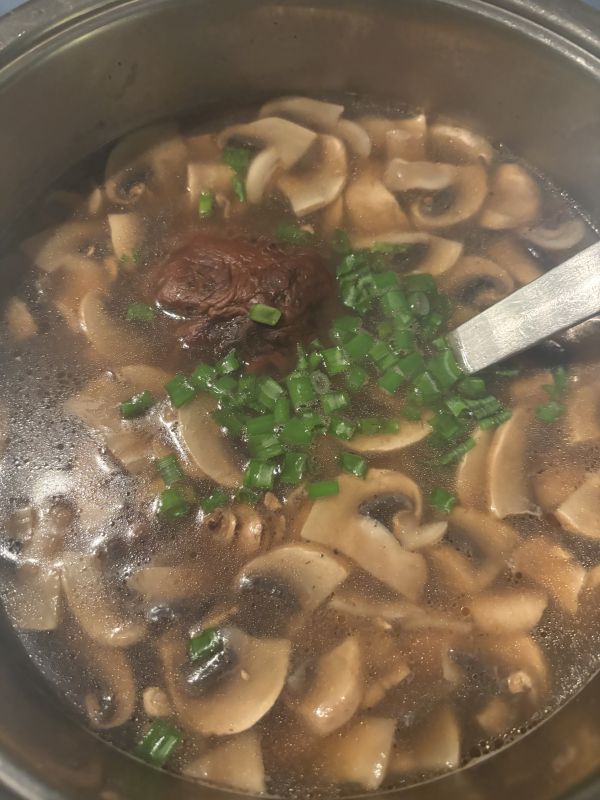 Dat ziet er gezellig uit @Petrasmoestuin Wij aten rest quiche en paddenstoelenbouillon. Mega lekker! Allemaal oude passenstoelen die ik zelf geplukt danwel zelf gekweekt heb. 1 giga shiitake die maar niet zacht wilde worden. Die heb ik na afloop gegeten. Echt een heerlijke vlezige paddenstoel. Dat grote ding daar. Rest is verse champignon en lente-ui. Die heb ik binnen staan, maar die stengel vind ik veel te hard… dus naar buiten gehold. Had wel iets meer gemogen, maar had kennelijk een verveelde stengel. Dat zie je niet in het donker. Was zo lekker! Mijn man houdt helemaal niet zo van soep. Jeugdtrauma. Hij eet het altijd braaf op, maar wij eten wel 2 kommetjes en hij zelden. Van deze soep heeft hij 3 x opgeschept 😆- Alles over Dahlia's