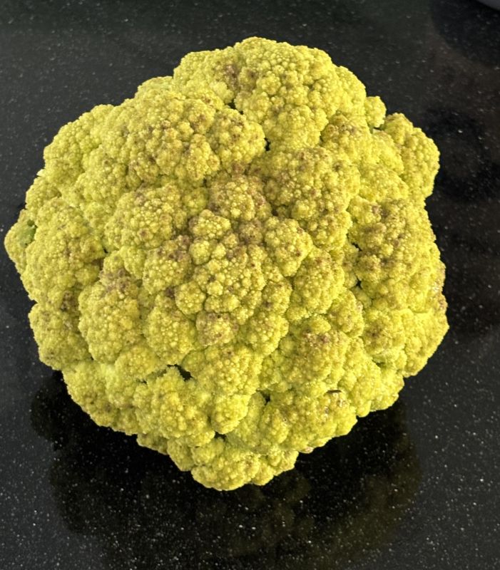 De bloemkool uet! De grootste tot nog toe. Wel groen want die bladeren die ik vastbind, schieten toch weer los elke x. Maakt niet uit. Smaakte heerlijk, maar de kleur zorgde voo wat verwarring. Hub, dit smaakt naar die witte broccoli! Haha ja dat is het ook. Samen met een gekochte spitskool en aardappelen, was het een groot feest met de Vega schnitzels.