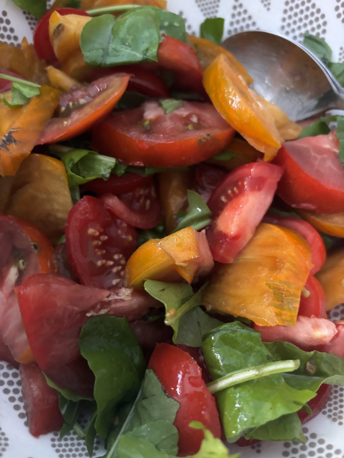 had heel mooie tomaten. Een grote tomatensalade gemaakt met rucola en veel basilicum. Was de eerste X salade compleet uit eigen tuin… de zomer is al haast voorbij luitjes. Sjonge jonge..: Turkse bonenstoof met bulgur en ingemaakte pepertjes. De pot is nu leeg en ik heb gewoon nog 1 pot staan! Ik dacht dat het nu op was en ik nog een paar maanden geduld moest hebben. Hoeft dus niet. Maaltijd was in vele opzichten geslaagd. Als toet heel veel vijgen. Melliebird in the house 🤣