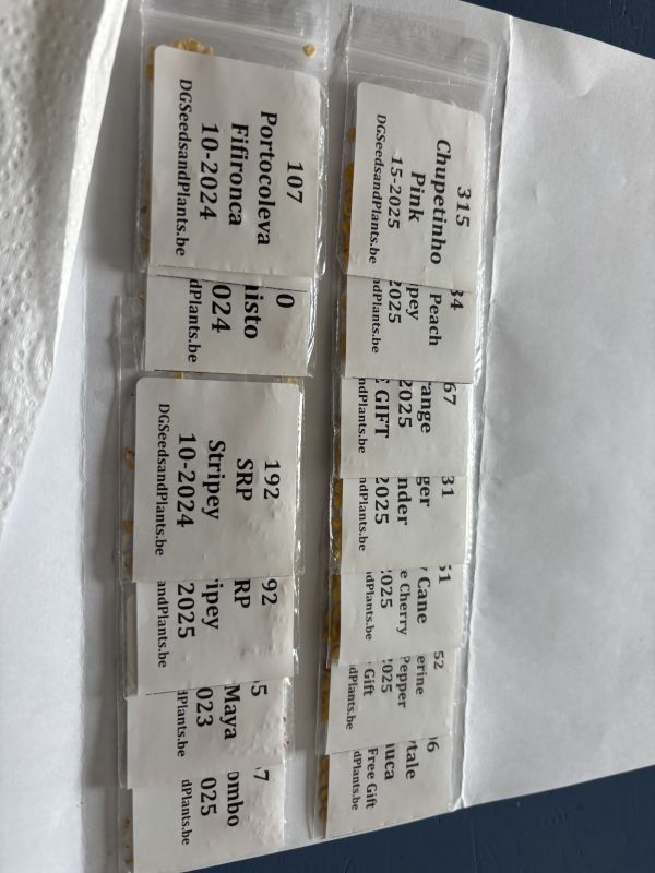Mooie doos met pepers gehad van @Dahli zulke lieve mensen ken ik toch ❤️❤️❤️ En nieuwe zaden van dgseeds. Ook heel blij mee. Leuke namen zoals Candy cane (gestreept) maar ook Peppa peach stripey. Alvast voor komend seizoen. Heb 2 zakjes gratis erbij gehad waarvan 1 zebrange. Daar twijfelde ik nog over, want de mijne geeft maar 1 streep of nul. Niet zo’n lekkere peper om te eten om eerlijk te zijn, maar zo mooi voor het oog. Dat wil ook wat. Dus heel blij met deze zaden die vast wel met strepen zijn. Blij 🥰