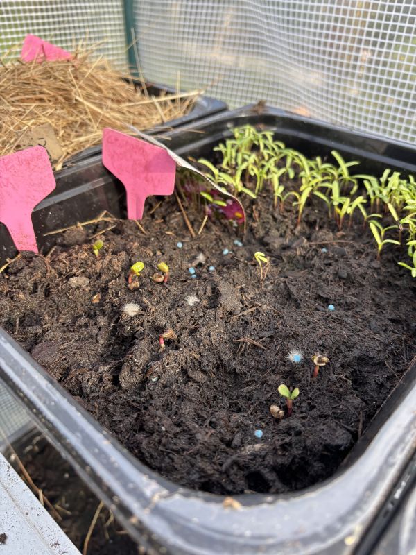 3 soorten komkommer gezaaid, 9 stuks in totaal. Missie is om ze veilig voor slakken te houden én voor de mol…. Had ik vorig jaar eindelijk komkommers, ragt die eikel van een mol eronder door. Had ze wel terug geplant, maar helaas pindakaas. Dag erop weer eruit en toen wilden ze niet meer. Dit jaar gaan ze in een grote pot. Knappe mol die daar doorheen komt. Hoef ik me alleen nog te bekommeren om de slakkeninvasie. Kom maar op!