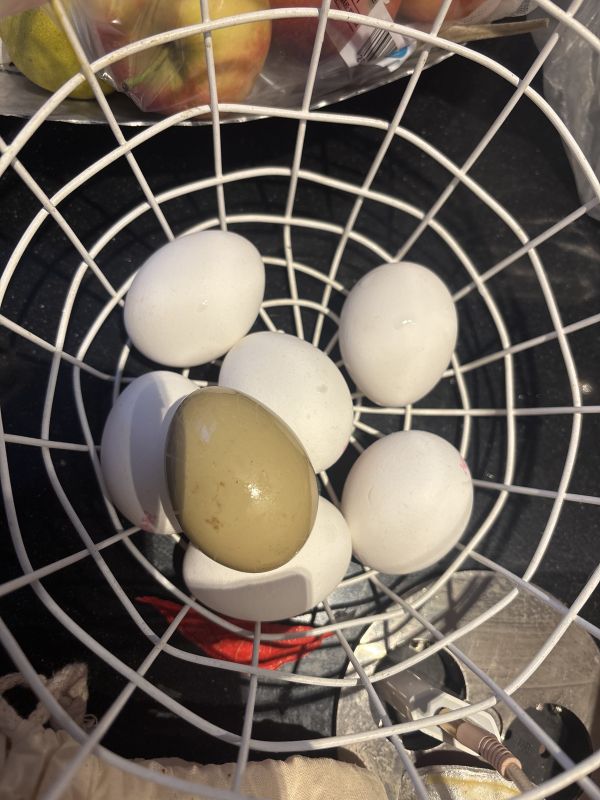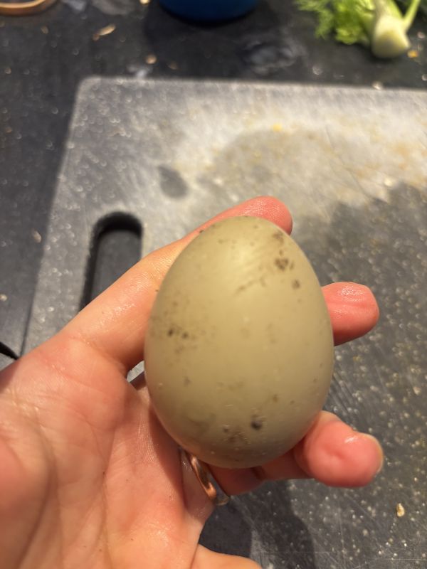 Jaaaaa, het eerste eitje van het jaar! Tussen die witte eitjes valt een stuk beter op hoe mosgroen het ei eigenlijk is. Dank je wel Kiki 🫶🏻