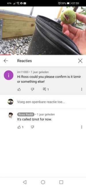 @acpronk in p9 zou je toch redelijk snel wortels moeten kunnen zien. Je kunt altijd de kluit voorzichtig uit het potje halen om te kijken of er wortels zichtbaar zijn. Als de bladeren niet verwelken zou ik geduld hebben en ze mooi laten gaan. @Flup over wel of niet Smyrna wordt helaas veel geroepen over veel soorten. Wat ik zeker weet is dat Ross Raddi in een filmpje een Izmir rijp heeft die naar dezelfde bron te herleiden is. Hij heeft daar geen vijgenwesp. De peretta's heb ik bij verschillende verkopers vandaan. We gaan het zien. Als het wel Longue D'Aout blijkt te zijn dan vind ik dat wat vijgen betreft niet erg, wel jammer dat die dan dubbel is natuurlijk.. @Roland die Smith lijkt voor mij ongrijpbaar.. Het is voor mij 1 van de soorten die altijd mis gaat met stekken 😅 Golden rainbow zie je in Europa niet veel volgens mij toch? Ik voel hier een stekken ruilbeurs aankomen met een aantal leden komende winter 😁😁