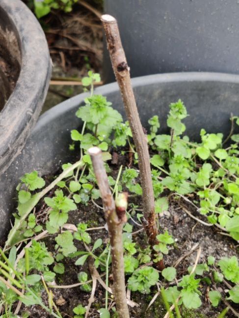 Helaas, de stek in pot is door slakken aangevallen. Heb de slakken vanavond verwijderd. Nu afwachten of er nog een oog uitloopt. Zal er ook een slakkenkraag op zetten, dat heb ik bij de andere stek in het begin ook gedaan.
