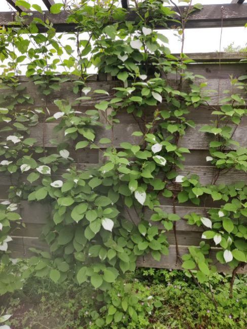 Ik verkoop twee groot geworden stekken van Actinidia Kolomikta Annikki. Ze hebben al bloemknoppen. Ophalen in Kleef ( 20 autominuten van Nijmegen). Samen voor 10 euro . De soort is zelfbestuivend. De moederplant heeft vorig jaar vrucht gedragen. Maar ik heb er ook mannelijke en vrouwelijke planten bij in de buurt, dus of hij echt zelfbestuivend is, weet ik niet. Zo ziet de moederplant er nu uit. Bij interesse graag PM, want ik ben niet veel meer op het forum.