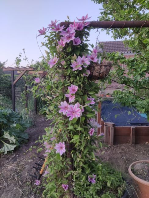 Mijn clematis bloeit en dit is de laatste keer dat ik hem zie bloeien, ga het huis verkopen, dus nog even een fotootje.