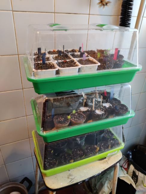 Ik schoot in de lach toen ik dat las. Bij mij was het namelijk ook niet alles. In de keuken stond nog een stapel van drie kiembakken op een kruk (altijd 20 graden daar). Iedere keer als ik de vriezer opendeed, moest ik die kruk opzij schuiven.