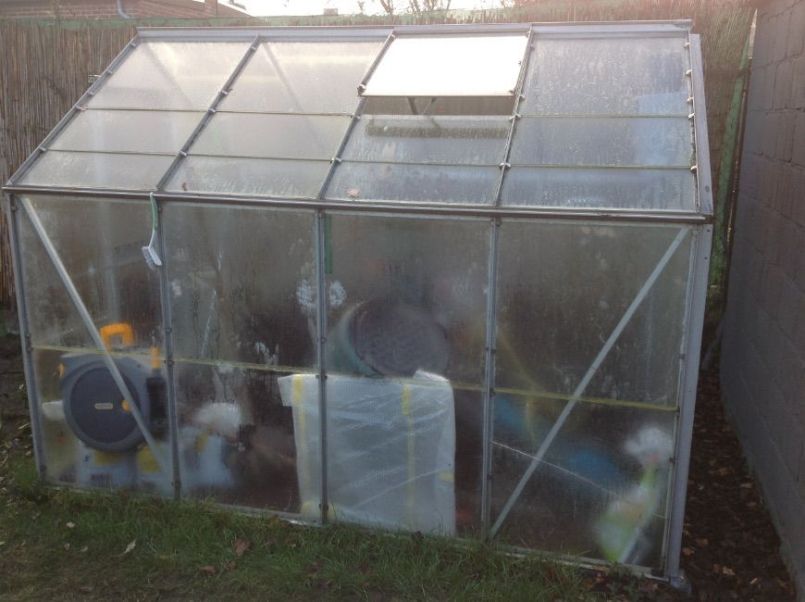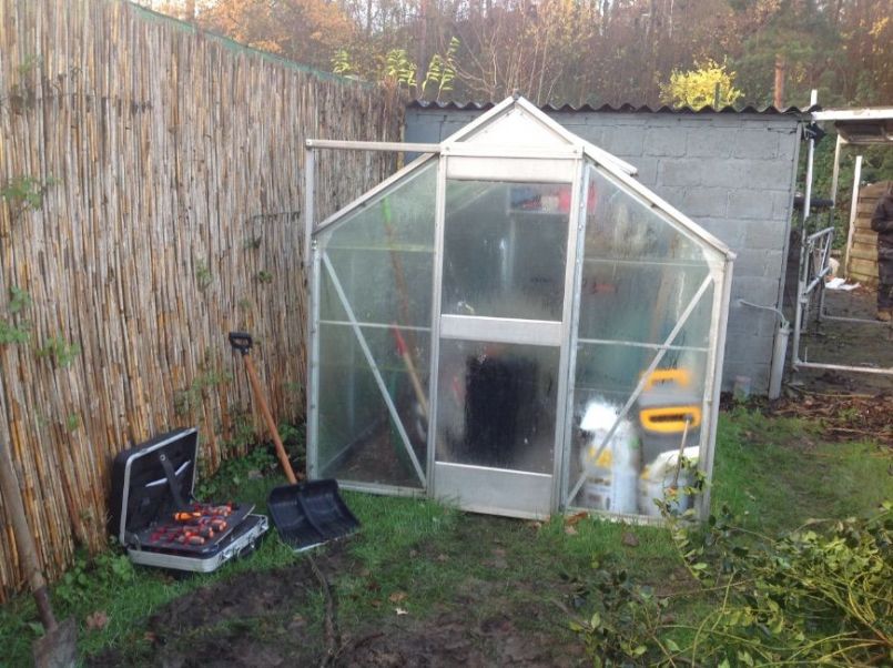 Al zou ik willen, er is niets te doen op mijn tuin. Behalve zo nu en dan spruitjes oogsten. Onkruid doe ik nauwelijks aan dit jaar, ( geen idee waarom), plannen zijn gemaakt, grond is grotendeels bedekt. Een keer per week effe checken of het vlies nog over de broccoli zit (meestal niet), is voldoende. Het is daarbij ook veel te nat en naar mijn gevoel te koud om buiten rond te klooien. Wat we wel gedaan hebben is de tweedehands kas opbouwen. Er ontbreekt hier en daar wat glas. Dat wilden we aanvullen met glasplaten die we hebben staan. Maar in tegenstelling tot wat je ziet op youtube filmpjes, is glas snijden niet makkelijk. Dus voorlopig effe de gaten gevuld met oude kanaalplaten. Totdat we iemand vinden die handiger is met glas, dan meneer en ik.