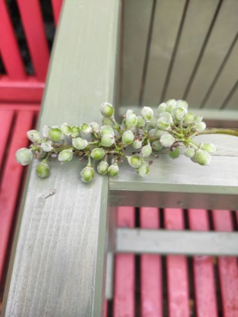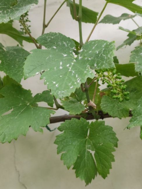 In mijn vorige topic meldde ik dat het dit jaar beter ging met mijn druif "Schuyler", maar na de regen en warmte van de afgelopen tijd zit er toch weer een ziekte in. Vorig jaar was het valse meeldauw, nu is het waarschijnlijk meeldauw. Zie foto's. Fot 1 is het meest recent. Fot 2 en 3 zijn een aantal weken geleden toen de eerste tekenen zichtbaar werden volgens mij. Het witte spul op het blad kon ik er nog een een beetje afrollen. Maar op de middelste foto zie je al een iets van een witte waas op sommige vruchten. Nu ben ik van plan deze druif te ruimen en er een ECHTE meeldauw resistente voor in de plaats te zetten, mits die bestaat.? Graag hoor ik jullie ervaringen met een dergelijke druivelaar. Ik heb er al het nodige over gelezen, maar de praktijk zegt toch vaak meer. Dus welke tafeldruif druivelaar is echt resistent?