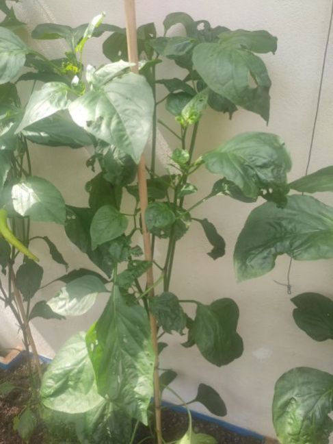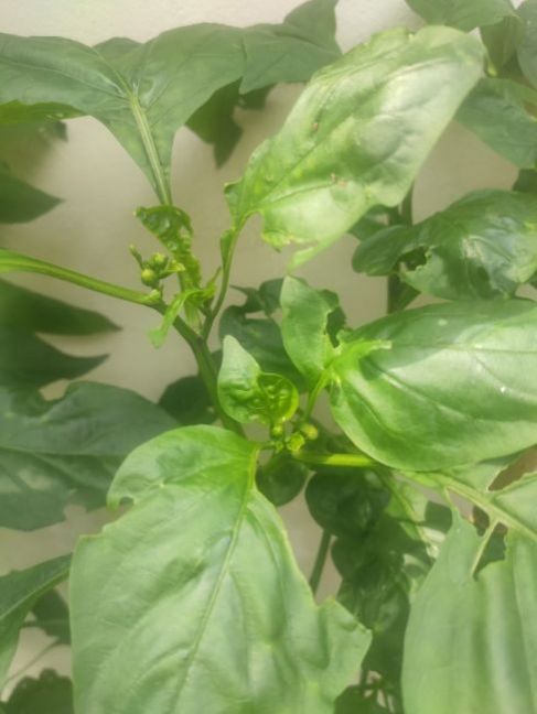 Ik heb twee pepers in een kasje. Ras is onbekend. Er zijn al verschillende bloempjes aangekomen - die overigens rechtop staan - maar die vielen er na enige tijd af. Ik weet niet of het zelfbestuivers zijn, maar als ik de bloemen zie tik ik wel regelmatig tegen de scheuten. (niet te hard uiteraard). De planten zien er wel gezond uit en ze groeien ook niet slecht. Kan het aan de voeding liggen, of iemand tips?