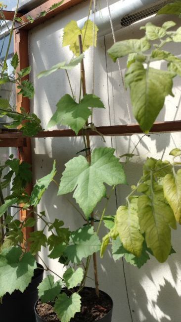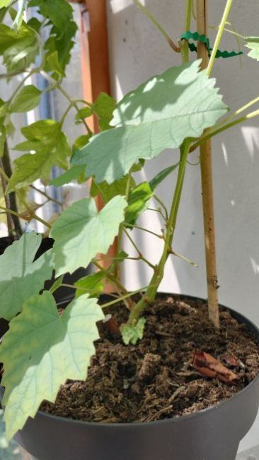 Ik heb een 'Schuyler' druivelaar in de tuin op het zuiden. Ik had er vorige jaren weinig geluk mee. Vorig jaar valse meeldauw. Nu gaat het beter, mooiere bladeren en genoeg trossen. Toch heb ik sinds een ruime week de nodige gele bladeren die afvallen. Ik heb gespoten met brandnetelgier en aan de voet magnesium gestrooid. Nu is mijn vraag of ik tijdens deze droogte ook actief water moet geven en beregenen. Vorig jaar heb ik volgens mij valse meeldauw gekregen omdat ik te veel beregende.
