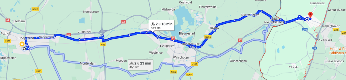Deze week maak ik de grote overstap van auto en fiets naar een heuse elektrische fiets - oftewel e-bike op zijn Engels. De auto mag nu echt weg. Deze is een overbodige luxe geworden. De gewone fiets - met fietskar - houd ik nog een poosje, voor je weet maar nooit. Ik kan nu weer eens fietsen naar en door Stad, dat ging me sinds de corona tijd steeds moeilijker af. Ik ging met de auto eens per maand naar Bunde, net over de grens bij Bad Nieuweschans om tabak voor de hele maand te halen. Dat is 40 km heen en idem terug. De e-fiets heeft een bereik van 90 km op de economische stand. In theorie zou het kunnen, maar het is niet goed de accu bijna of helemaal leeg te rijden. Daarom ben ik op zoek gegaan naar een oplaadpunt voor fietsaccu's in Bunde. Er zijn wel apps voor Nederland met oplaadpunten voor fietsaccu's, maar voor Duitsland heb ik nog niks kunnen vinden. Ik kan natuurlijk heengaan en ter plekke informatie vragen, maar ik ben liever goed voorbereid. Ik kan een horecagelegenheid opzoeken en wat nuttigen terwijl de accu geladen wordt, maar ik zoek het liever vrijblijvend. NB Ik heb me bedacht, de e-bike is geannuleerd! Bovenstaande tekst niet gewijzigd vanwege leesbaarheid, zie mijn bericht van 25-08.