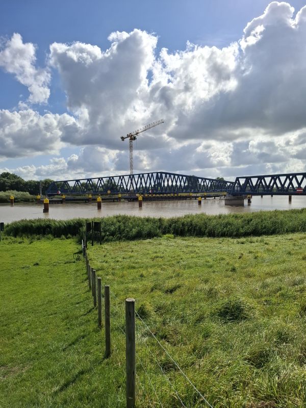 Donaldk en Rorror, ook bedankt, maar het elektrische fiets feestje gaat niet door! Tijdens het wachten op een mail van Decathlon, dat de fiets opgehaald kon worden, ging ik nog een paar keer op mijn gewone fiets naar het winkelcentrum. Beetje koude wind, paar druppels regen. Daarna kreeg ik hoofd- en nekpijn, tranende ogen. Dat was ik vergeten, dat dat een kwaal van mij is. Weinig weerstand. Omdat dat met een e-bike niet minder zal zijn, heb ik me bedacht. Als ik van zo'n klein stukje al klachten krijg, laat staan een tocht naar het buitenland. Dus heb ik de aankoop geannuleerd! Die auto, een youngtimer Renault Twingo uit 2002, is onderhoudsarm, kost weinig aan vaste lasten en rijdt zuinig, dus die mag blijven. Ik ben meteen weer gaan tanken op de grens (1,66) en heb een slof tabak (50 gram a 8,30 ) gehaald in Bunde. Het is een saai stuk rijden, laat staan als ik dat eind met een e-bike zou moeten doen en weer terug. Opgelucht na de beslissing, blij dat ik auto rij. Nog even doorgetuft naar de Friesenbrücke, die bijna gereed is voor de trein Groningen - Leer. Mocht ik in de toekomst zonder auto komen te zitten, dan kan ik altijd nog de trein naar Leer pakken. Dat zou ook een goed alternatief zijn als ik de e-bike wél had genomen.
