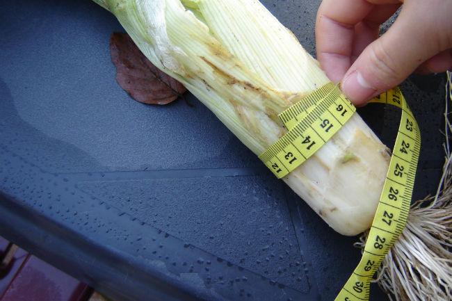 De deelnemer die de prei heeft met de grootste omtrek op het dikste witte gedeelte aan de kant van de wortels is winnaar.