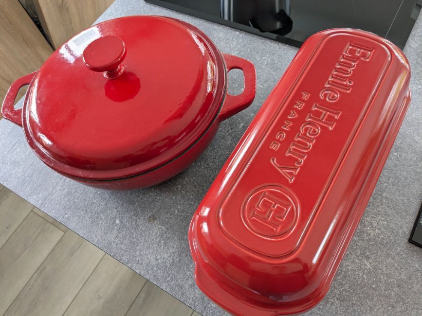 Geplaatst: 28 april 20241 j Ik ben er ook echt heel blij mee! De pan is van zwaar gietijzer, deksel ook, en 30cm doorsnee. Die gaat naar een vriendin. De keramieken broodbakvorm heb ik zelf in gebruik genomen.