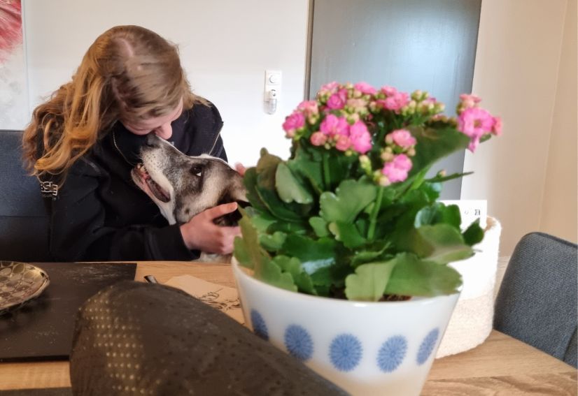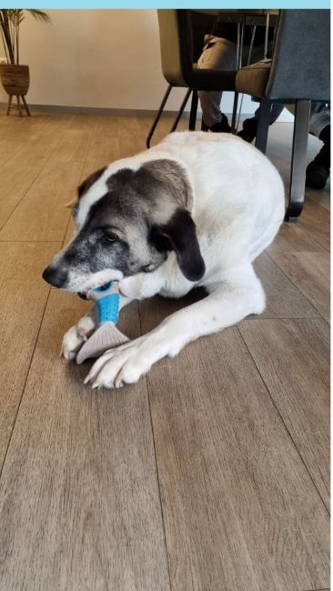 Geplaatst: 26 februari 20251 j Vandaag een leuke middag gehad. Vandaag is er een studente met een vriend helemaal vanuit Nederland naar ons in Duitsland gekomen om Romy te bezoeken. Zij heeft onze opvanghond Romy in Spanje 6 weken verzorgd in een opvang en was helemaal verliefd op haar en wou haar een keer terugzien, toen ze hoorde dat wij haar geadopteerd hebben. Ze moesten 3,5 uur heen en 3,5 uur terug rijden. En wat is Romy verwend! En wij ook. Wij kregen een heel leuk mandje met bloeiende plantjes en heel mooi ingepakt. Romy kreeg 4 cadeautjes, ook in een leuke mand bij elkaar: Een snuffelmat, een speelbal, een snackbal en een speelvis. Niet normaal meer voor iemand die je voor het eerst ziet. Wel veel geschreven met elkaar natuurlijk. Romy is door alle indrukken helemaal uitgeput en ligt op haar kussen heel zwaar te slapen en ik kijk constant naar alle leuke speeltjes. Hond blij, vrouwtje blij. 26 februari 20251 j aangepast door Petrasmoestuin