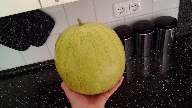 Geplaatst: 16 augustus 201510 j Erop kloppen en luisteren... je kan het verschil horen tussen rijpe en niet rijpe meloenen. Vergt misschien enige oefening... Hier zijn de meeste watermeloenen wel rijp, een enkele begint zelfs al melig te worden. Toch klinkt de ene anders als de andere en ik denk dat dat komt door de verschillende grootte. Ze zeggen dat als de watermeloen hol (laag) klinkt hij rijp is? Zelf kijk ik toch het meeste naar hoe lang de watermeloen gegroeid heeft en bepaal hierop de rijpheid.