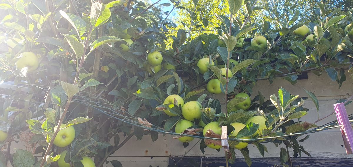 Geplaatst: 6 september6 Sep Auteur Nou, ondertussen zijn we 9 jaar verder... en heb ik eindelijk een heleboel appels kunnen oogsten van mijn eigen Veendammer Glorie (x malus Sylvestris). Afgelopen jaren hingen er steeds maar 1 tot 3 appeltjes aan die al snel door de ratten ontdekt werden.Maar dit jaar hing ie vol.En dat terwijl hij nog eigenlijk op de tijdelijke plek staat, te dicht bij het huisje en daar door gaas heengroeit etc. Heeft het duidelijk toch erg naar de zin, ondanks slechte snoei etc. En nu heb ik dus een kratje met appels.Smaaktest gedaan. Vorige jaren heb ik geen goed gerijpte appels kunnen oogsten (moest de ratten voor zijn) om een echte smaaktest te doen. Maar dit jaar dus wel... en.... ze zijn sappig, fris, licht zurig en licht zoetig. Eigenlijk komen ze heel erg overeen met de Veendammer Glorie die ik zo lekker vind. Ook qua uiterlijk, lichtgroengeel met eventueel een voorzichtig rozig blosje..Het lijkt erop dat mijn Glorie ook wat minder spotgevoelig is dan de echte Veendammer Glorie.Dus... ik vind dit project geslaagd. Het doel was een eigen Veendammer Glorie omdat de boom bij de moestuinen helaas de laatste jaren heel snel wordt leeggeplukt door iets te hebberige mensen. Nu hoef ik niet meer op te letten of mij daaraan te ergeren.