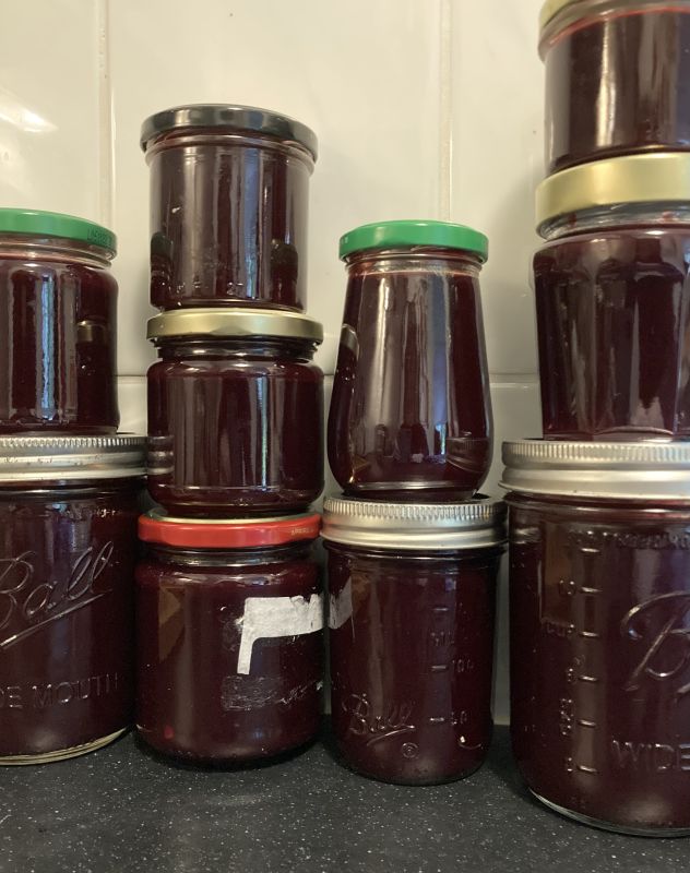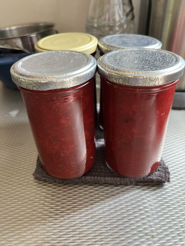 Hier vandaag ook jam, 9 potten bramenjam, en 6 potjes josta/kruisbesjam! 😊😋