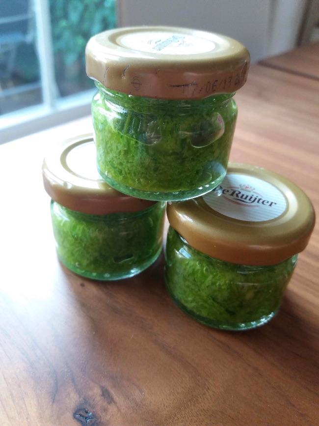 Geplaatst: 31 mei 20196 j Knoflookprut. Van de bloemstengels van de knoflook.Dit zijn kleine potjes hoor, maar goed sterk van smaak . Vorig jaar had ik meer knoflook...dus meer bloemstelen...nu dus wat minder. Idee is niet van mezelf maar staat op eemlook.nl bij de recepten.