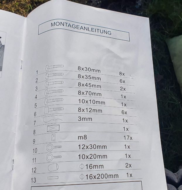 Geplaatst: 21 maart 20223 j lol M10 10mm lang daarvoor hebben ze toch geen foto nodig. Hun handleiding laat ook niet echt verschillen in lengte zien. Je zou gewoon een M10 boutje kunnen halen en op gepaste lengte afzagen ( zet er eerst een moertje voor op en die trekt dan de draad op de snede goed), gaat sneller zijn dan op hun wachten. Wel balen als alles niet aanwezig is. Of als er ruimte is, wat me lijkt op de summiere handleiding, pak een langere M10 bout draai er een moer 1cm ver op , draai het in je stuk en zet die moer vast. De bout steekt er dan wat uit maar is even stevig. 21 maart 20223 j aangepast door redzebra