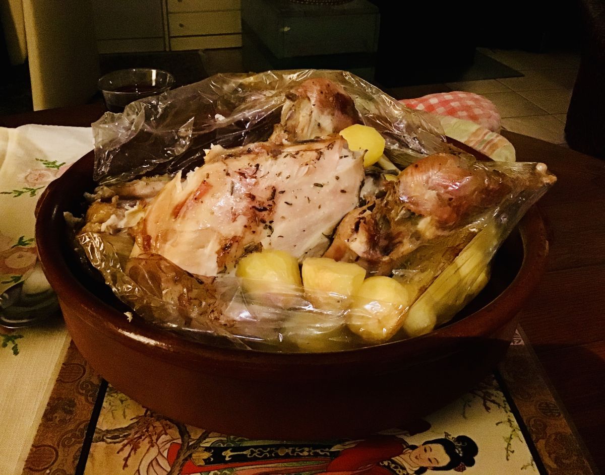 Geplaatst: 19 september 20205 j Ik denk dat ik in jaren niet zo n lekkere kip gegeten heb als de veldvleeskip die we vanavond hebben gebraden in een braadzak. Met alleen zout peper en wat (eigen)Provençaalse kruiden en nog wat aardappeltjes in de zak. 1,5 uur op 200 graden. Het ging allemaal net in mijn grootste ovenschaal. Heerlijk mals en zacht en veel smaak. Lie en ik hebben onze vingers afgelikt, morgen nog de poten en het karkas mag met een tweede karkas een tijd op het vuur voor bottenbouillon. We zijn allemaal kinderen van de Aarde 🌎