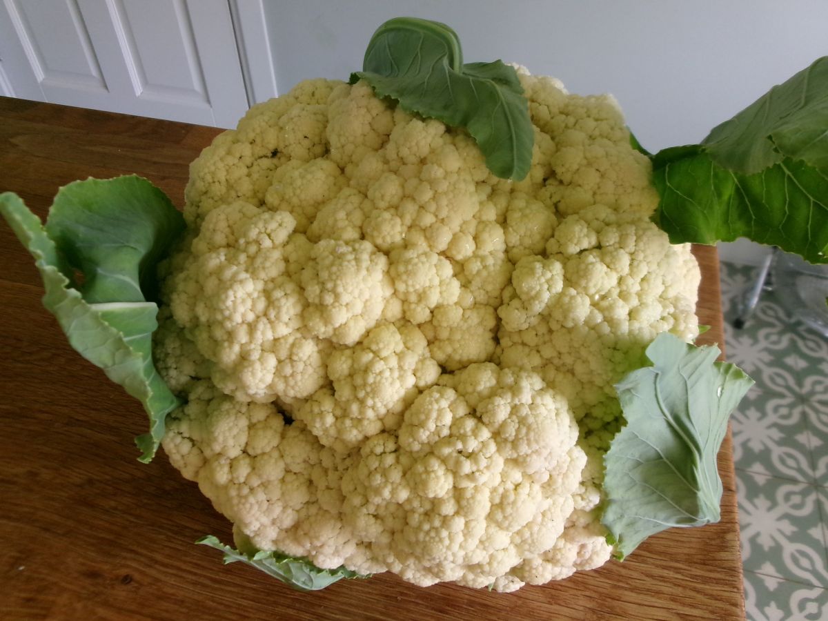 De uien die ik heb geoogst waren allemaal omgewaaid en lagen over de andere groente en het pad heen. Ze moesten er dus uit, omdat ze in de weg zaten. Ook kleine oogst is oogst. De rest van de uien staat nog.