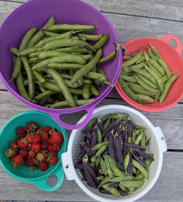 Ik had ook nog peultjes, ijsbergsla en dille geoogst. Maar daar vergeten een foto van te nemen.