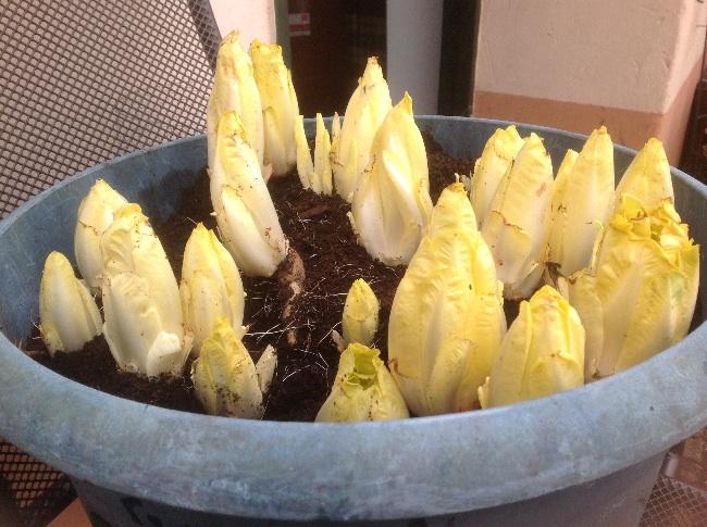 Geplaatst: 30 maart 201510 j Vet stoere oogst heb ik. Al vier seizoenen probeer ik witlof te telen. Maar wil niet lukken....tot nu! Had een bak in de garage gezet met witlof wortels, zo van, dit is de laaatste keer. Kan er moeilijk bij, maar toch een poos geleden gekeken, leek nog nergens naar. Eigenlijk een beetje vergeten, tot manlief zijn autootje gisteren uit de garage ging halen. Daar achter stond die pot dus die moest er uit, dacht nog, dan haal ik hem gelijk leeg! Maar tot mijn verbazing had ik witlofjes! Vind het zo gaaf! 22 stuks, groot en klein. Helemaal vanzelluf! Drie maal raden wat we vanavond eten!
