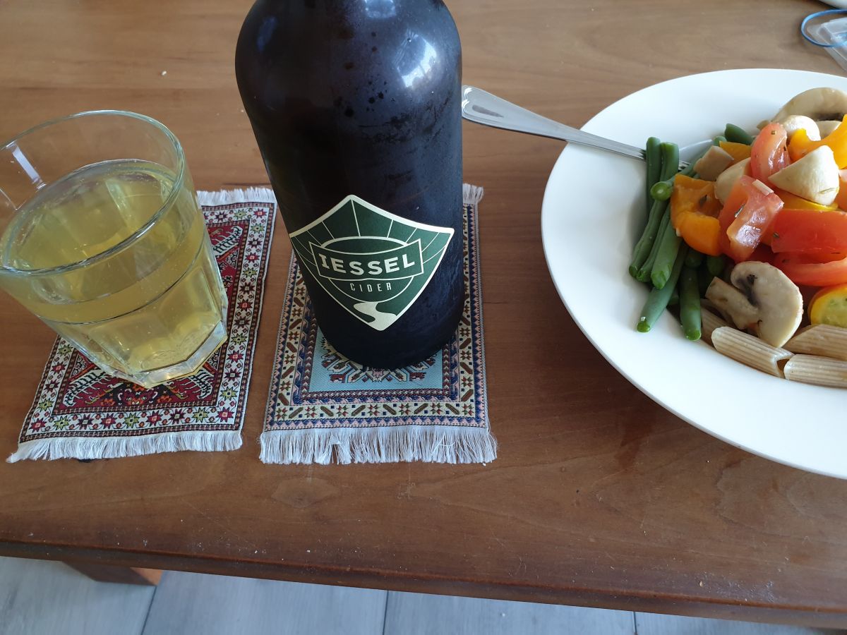 Geplaatst: 12 augustus 20205 j Het is heet, dat inspireert niet tot ingewikkelde of creatieve zaken. Bovendien is het boven de pannen ook warm. Dus gewoon snel een roerbak met wat groenten uit de tuin, boontjes, courgette, ui, knoflook, tomaat, kruiden. De champignons, paprika en macaroni kwamen uit de supermarkt, evenals dit bijzonder lekkere cidertje.