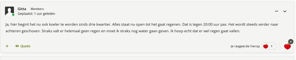 Wel vind ik het handig om aan te geven dat ik het leuk vind als iemand een leuk recept plaatst of mooie foto van oogst/plant/bloem of dier bijvoorbeeld. En de ‘cup’ als iemand je geholpen heeft met vraag en de moeite daarvoor heeft genomen.
