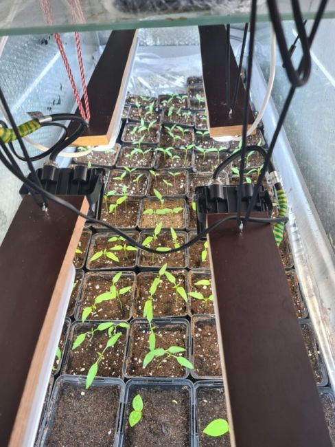 Geplaatst: 28 februari 20223 j Een korte impressie van https://www.ledlichtdiscounter.nl/led-armatuur-60cm-25w-high-lumen.html?id=222647420&quantity=1. LED batten: 6000K, 25W, IP65. Het aansluiten van de batten vind ik niet handig. Er zit een kort snoertje aan dat verlengd moet worden. De verlenging zit vervolgens tussen de batten en de plastic montageklem. De batten is niet te openen om zodoende het korte snoertje te vervangen. De batten wordt met 1 plastic montageklem bevestigd. Metalen klemmen hebben mijn voorkeur. De batten is geluidloos. En geeft een flinke lichtopbrengst: 23.630 L op 10 cm. De battens zijn te koop in 4000 K 840 voor 9,95 en 6000 K 865 voor 12,95. Ik heb in de bak van 1.57 x 0,47 m 4 battens en 2 LED schijnwerper breedstralers (4000 K). De warmteproduktie is zodanig, dat ik zo lang de lampen schijnen de bak open moet zetten. Ik heb alle battens individueel op 220 V aangesloten, zodat ik ze aan kan zetten op basis van behoefte. Verder in hoogte verstelbaar. Mijn propagator is zelf geknutseld, een oud aquarium met een flinke ombouw eromheen. Momenteel is ruim de helft gevuld met verschillende paprika- en pepersoorten, Zij gaan zodra het weer het toelaat de buitenkas in. Ik heb per pot (p9) 3 voorgekiemde (via Deno-methode) zaden gezaaid, die als 3-tal dalijk de kas ingaan. De rest zijn diverse exoten; verschillende vorstbestendige boomsoorten, bananen. 28 februari 20223 j aangepast door Ronald7