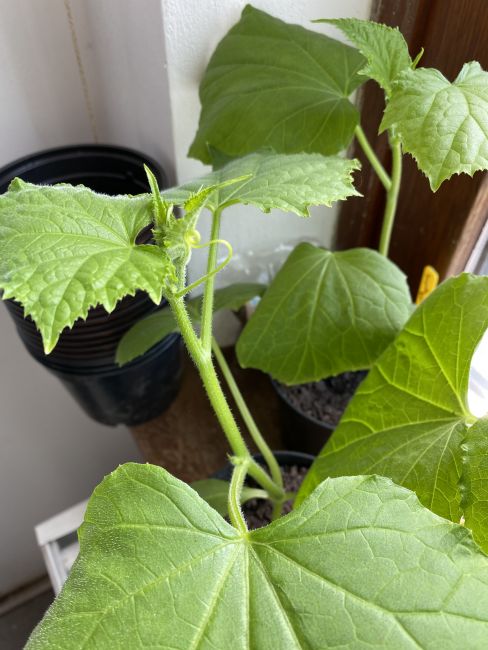 Ik durf het haast niet te zeggen, maar ik heb zelfs 3 komkommers....ik had niet verwacht dat alle 3 de zaden uit zouden komen en heb er eigenlijk ook niet over nagedacht dat ze zoveel komkommers geven🙈 Dat wordt door eten!