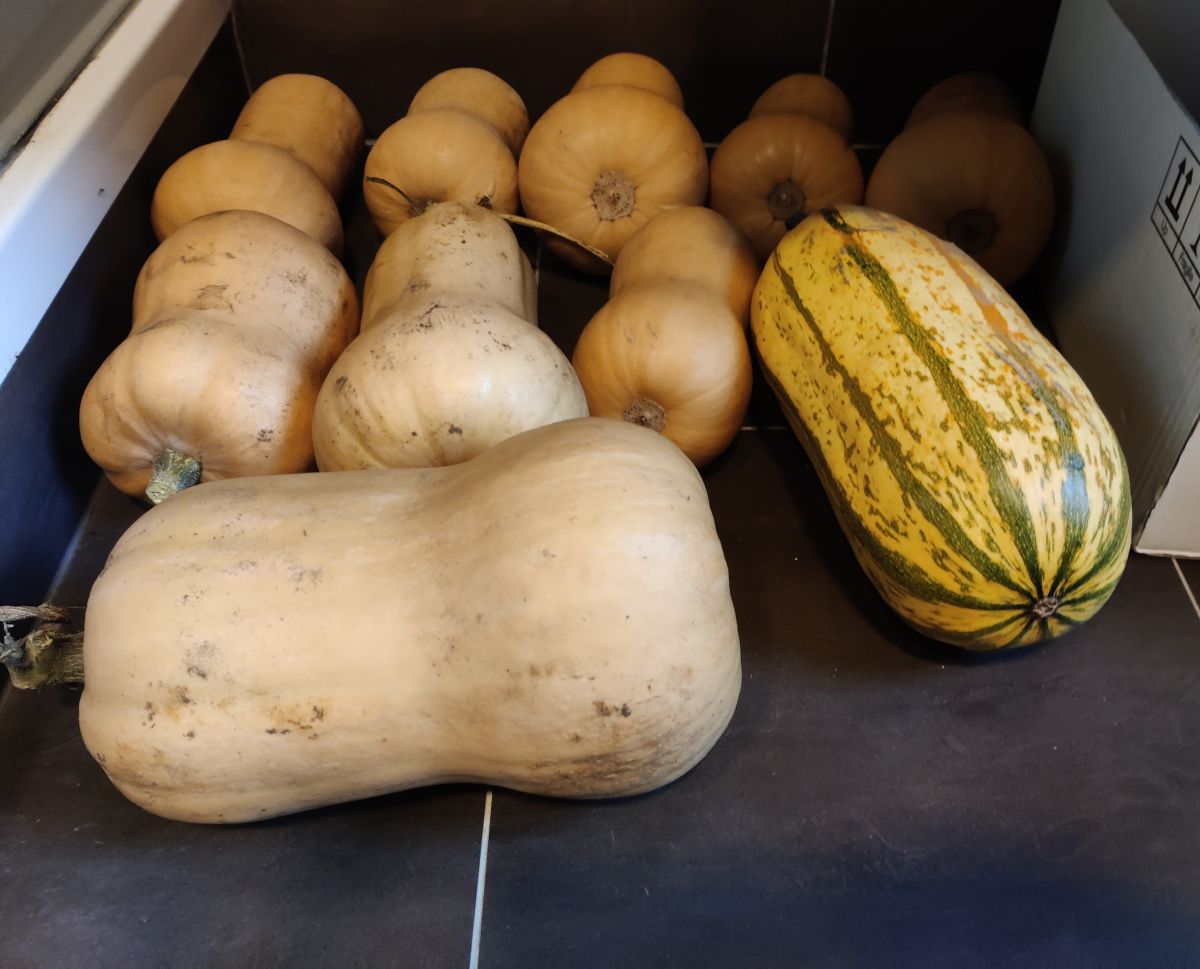 Geplaatst: 8 november 20205 j De nutterbutters waren een succes dit jaar, 27 stuks van 2 planten. Onze bewaarvoorraad op foto, daarnaast een stuk of 8 weggegeven en hebben nog een stuk of 10 met enkele spleten voor de soep (niet op foto). De spaghettipompoen is gekregen. 8 november 20205 j aangepast door simonvb